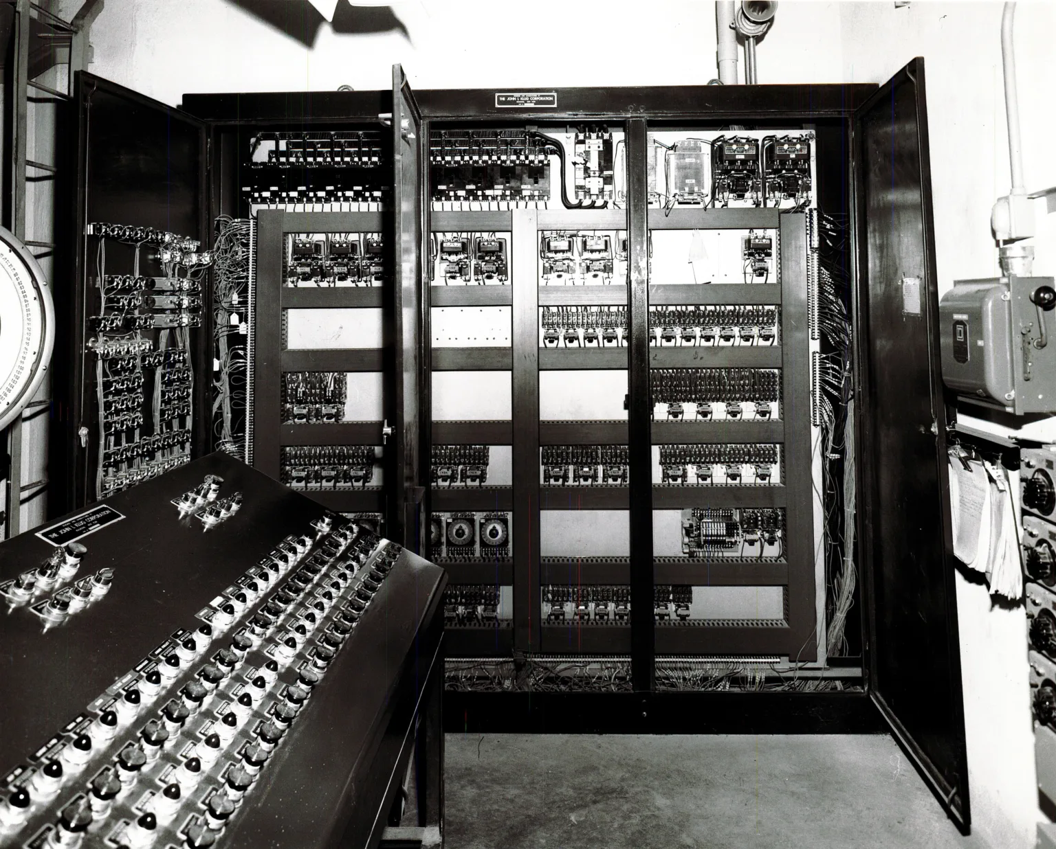 In 1961 in Brockport, NY John L Klug Corp built the worlds’ first fully electronic automatic processing batch house. Klug advanced beyond the mechanical type controls – which had been around in batch houses since the late 1940s and early 1950s – and implemented an entirely electronic control system. This early advancement automated the weighing, mixing, and distribution of glass batch to the furnaces. Now properly proportioned and well mixed batch could be sent to the furnace with no human assistance.