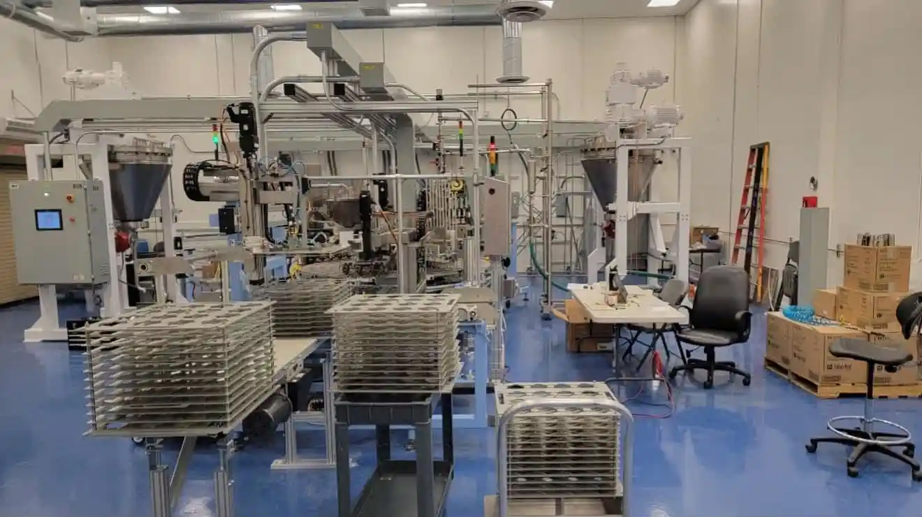 Our customer’s patented technology is to adhere a dry food/beverage on a substrate. Their first product is a functional beverage printed on a biodegradable cup. The application is a very efficient way to sell and ship products that previously contained liquid in a liquidless format. The liquid is added at the point of use, this reduces shipping costs and the impact on the environment by requiring less transportation effort to ship the same amount of products. The customer has been producing small batches of their products and selling direct to the consumer. They came to Optimation to ramp up production by having us design and build an Automated Production Line.