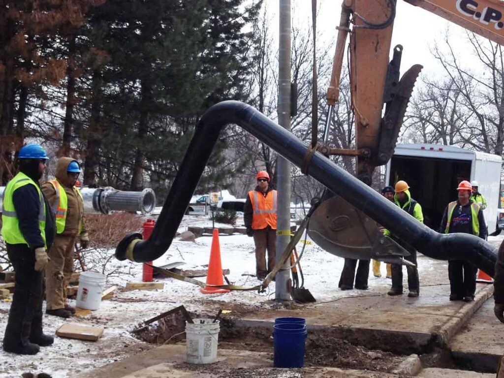 The utility company’s operations manager called Re:Build Optimation’s construction manager, Jack Burke, for an emergency meeting after a 70 lb. steam main had fractured beneath Lake Avenue. This line supplied steam to a neighboring company, causing the company to shut down operations. Both the neighboring company and the utility company became concerned about cold weather causing sprinklers to go off and damage operations and research in the neighboring company’s production facility.